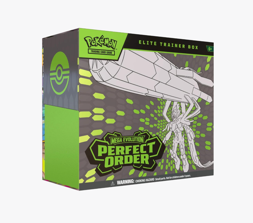 The pulse of the city beats in sync with the Pokémon and people who call it home—and preserving the order of it all is Mega Zygarde ex, the Legendary Pokémon who embodies strength in numbers! With threatening forces held at bay, peaceful days are ahead for the city's residents, including Pokémon like Mega Clefable ex, Mega Starmie ex, and Meowth ex, in the Pokémon TCG: Mega Evolution—Perfect Order expansion! The Pokémon Elite Trainer Box includes: